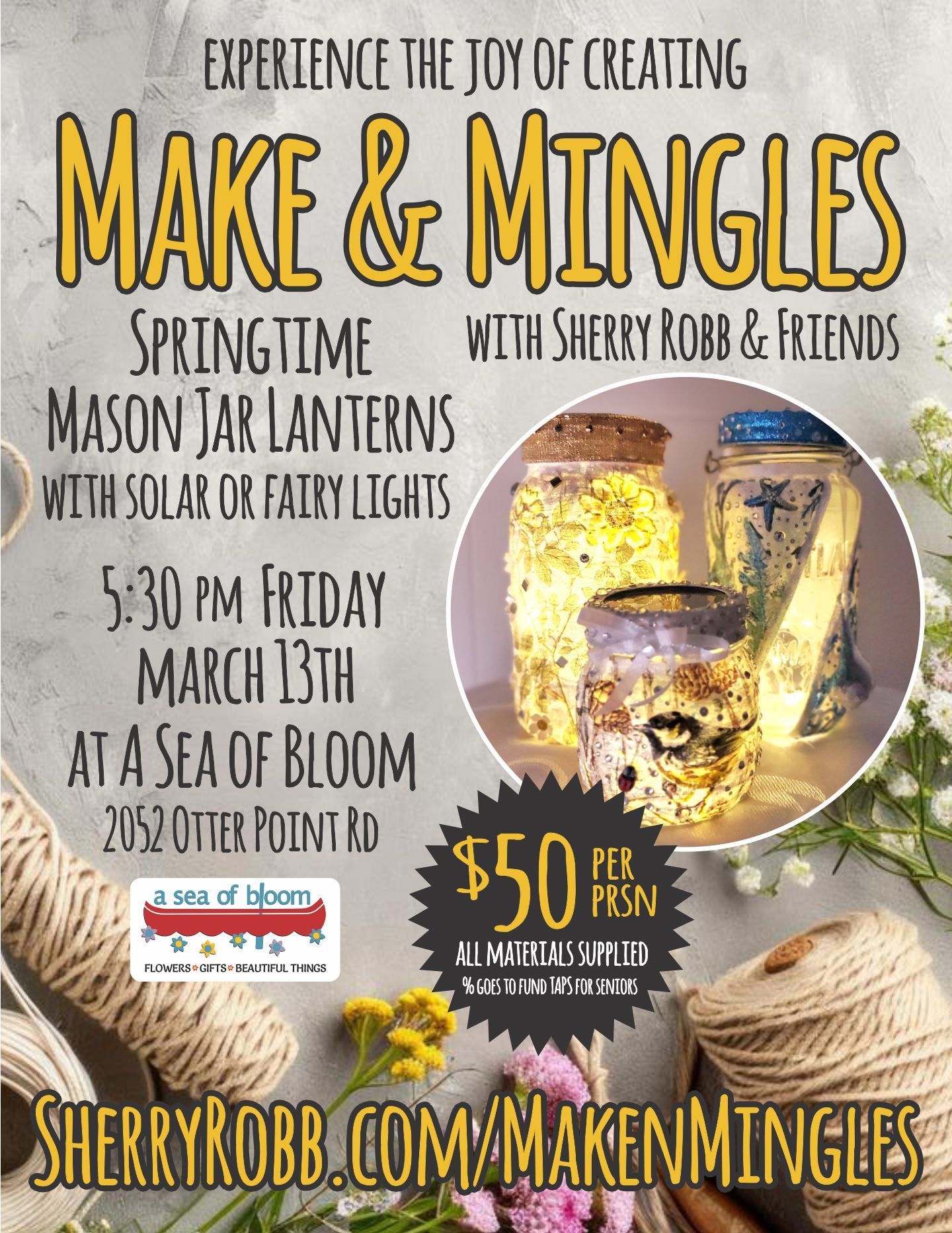 Friday evenings at A Sea of Bloom for a rotating selection of arts & crafts workshops.